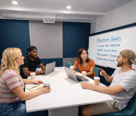 The Malibu Suite is a quiet, intimate space designed for small meetings, recording podcasts, calls, and brainstorming sessions. Seating up to 4 people, it includes a whiteboard, fast WiFi, coffee, and open air access. This room is ideal for focused conversations, creative thinking, and distraction-free collaboration.