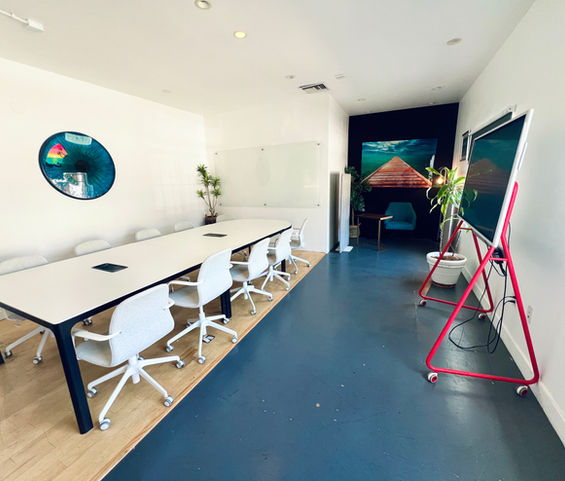 Our conference rooms are located just steps from the beach in the heart of downtown Santa Monica, surrounded by top restaurants, cafés, and shops. Designed to accommodate teams of up to 20 people, each room offers abundant natural light, a spacious layout, and a comfortable, professional atmosphere. All rooms are fully equipped with lightening fast wifi, ample seating, power outlets, whiteboards, and display screens for seamless presentations and collaboration. Whether you’re hosting a corporate meeting, creative brainstorm, tech session, or film production, our space is designed to support focused work and productive gatherings.
